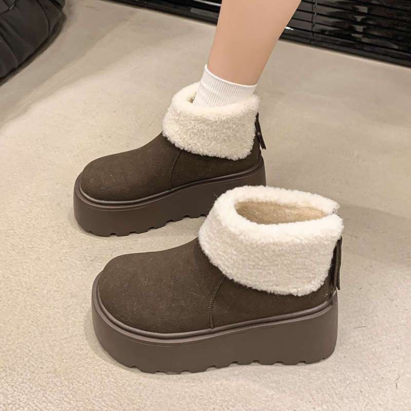 跨境韩版厚底加绒雪地靴时尚百搭小个子棉鞋女205秋冬新款舒适短