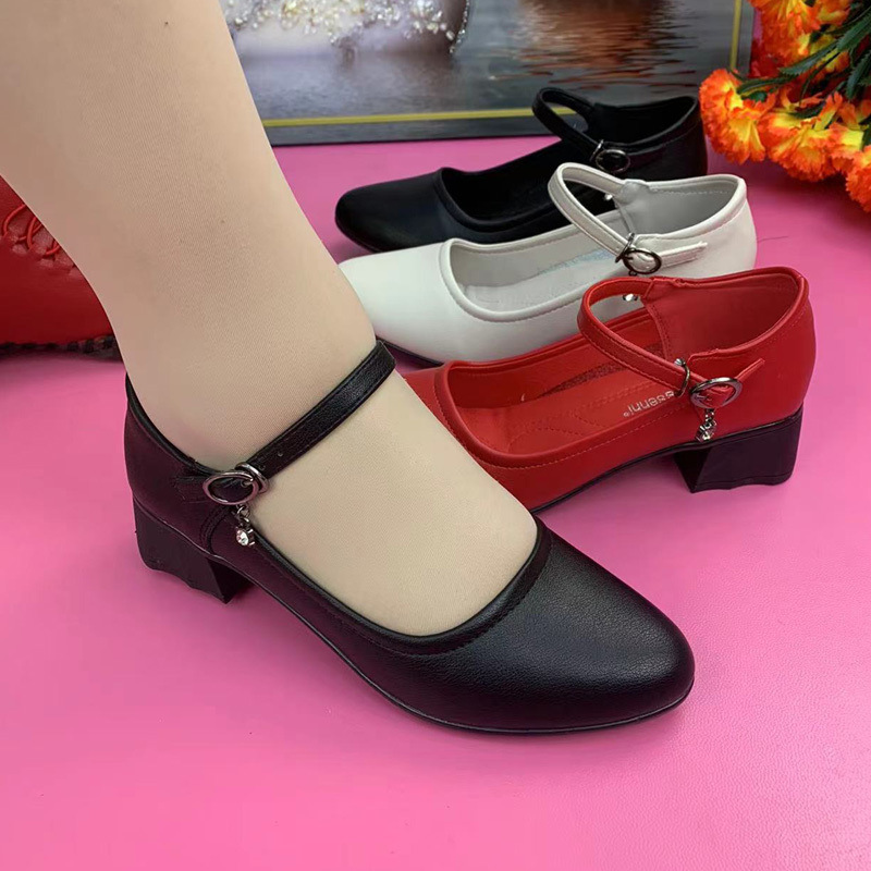 跨境高跟鞋皮鞋女鞋走秀鞋妈妈跳舞鞋软底中跟单鞋不累脚