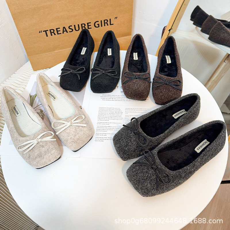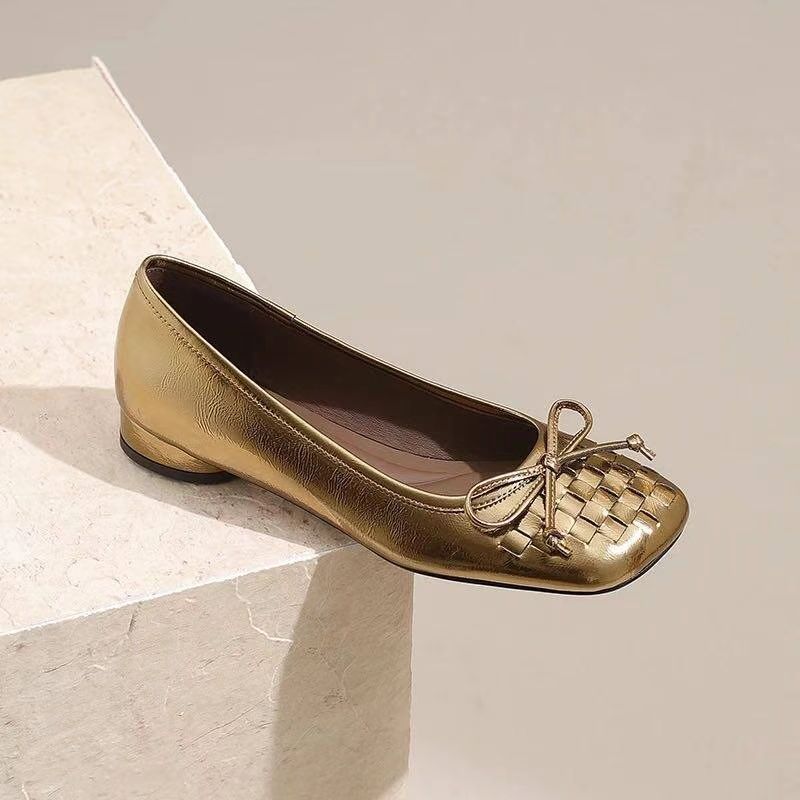 跨境2025新款编织豆豆鞋低跟软底单鞋法式蝴蝶结浅口平底芭蕾鞋