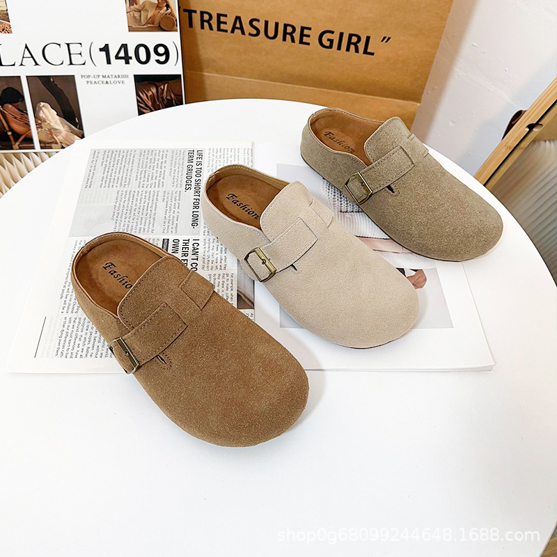 跨境东大门女鞋2025秋季新款圆头平底包头半拖鞋外穿懒人穆勒鞋子