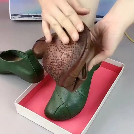 跨境高档真软皮单鞋女软底2025春秋款女士皮鞋舒适浅口平底妈妈鞋