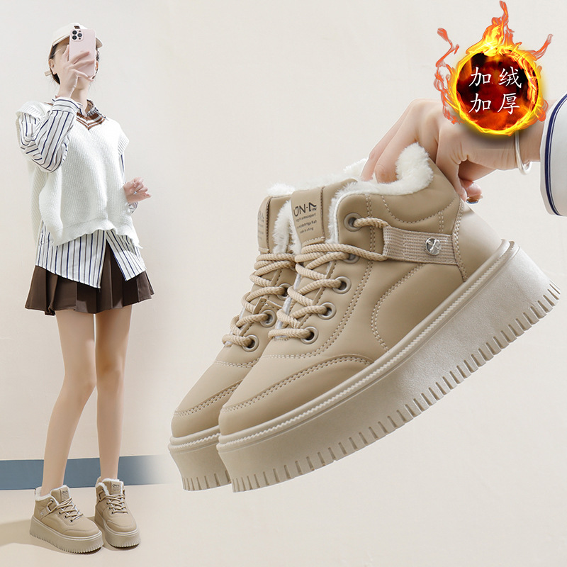 跨境外贸加绒高帮休闲鞋女生2025新款冬季百搭保暖棉鞋加绒加厚雪