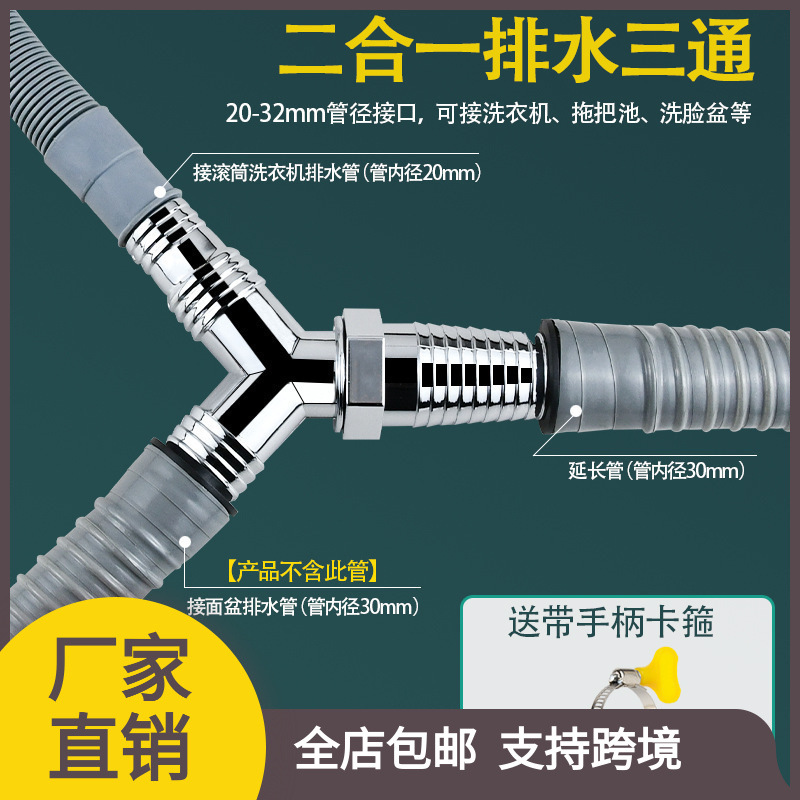 洗衣机排水管二合一型下水管三头通分叉面盆加延长软管地漏接头