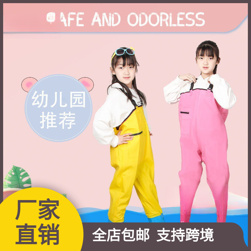 儿童玩水连体下水裤幼儿园防水衣服赶海小孩雨鞋男女抓鱼雨裤沙滩