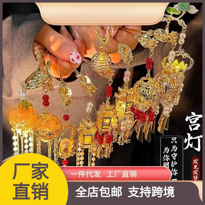 发光发簪步摇带灯簪灯凉亭灯笼流苏摆摊发饰汉服