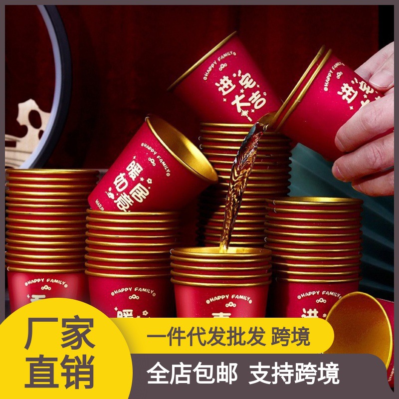 乔迁之喜纸杯新居搬家入宅仪式加厚一次性红色高档金箔水杯子水杯