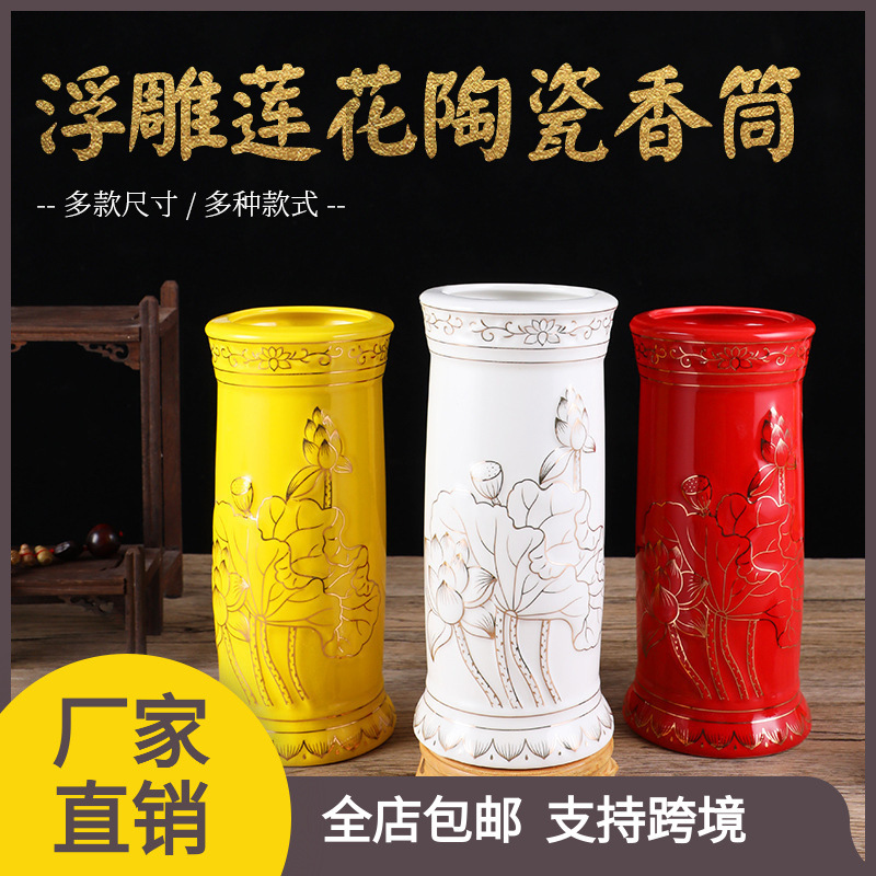 陶瓷香筒家用供佛供奉香桶插香筒装香筒线香筒立式香炉浮莲花款