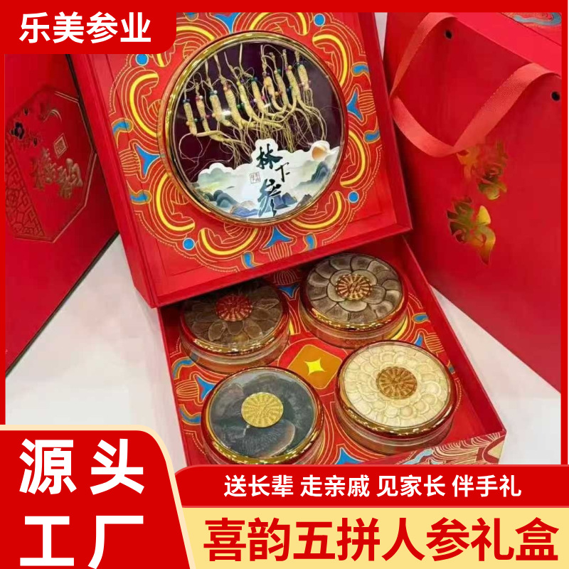 人参礼盒春节大福款五拼西洋参红参礼盒春节送礼员工福利长白山