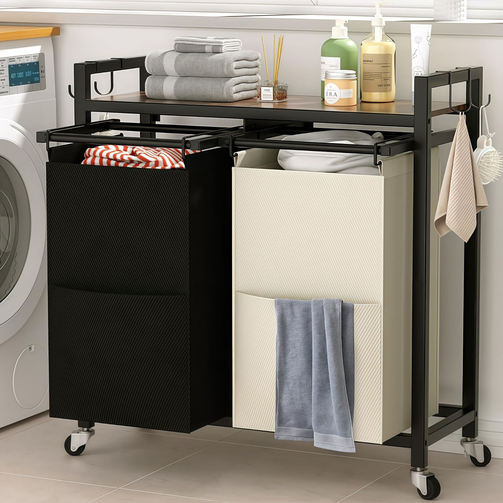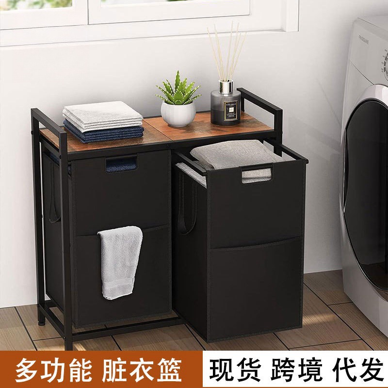 跨境 多功能大洗衣篮家用实木铁制脏衣篮洗衣房置物架收纳衣服筐