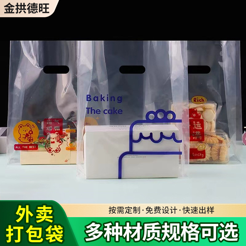 加厚四指手提袋批发 pe烘焙包装袋 蛋糕甜品西点水果捞打包塑料袋