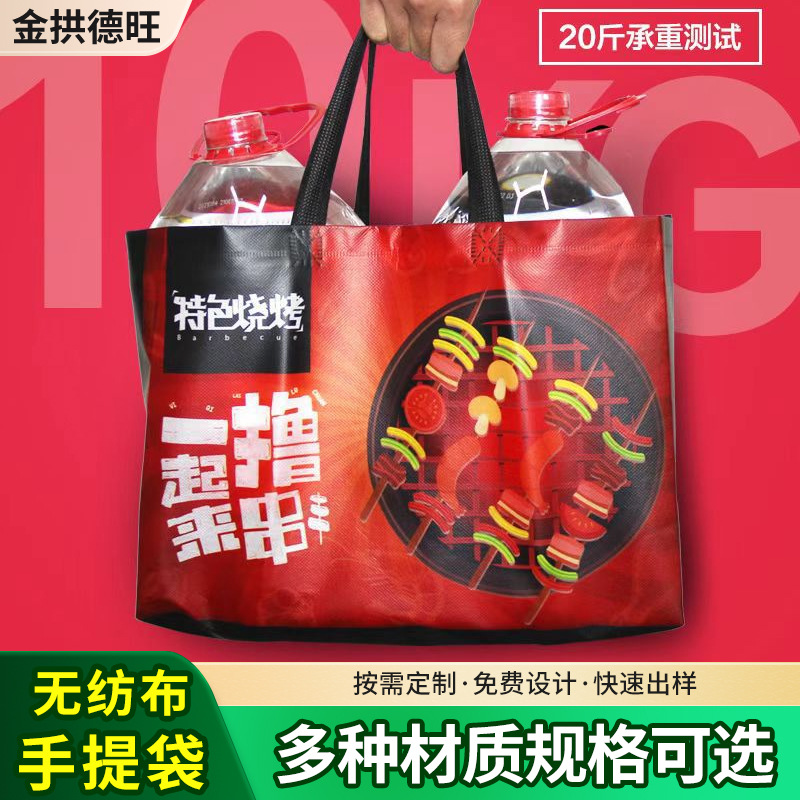 通用手提无纺布袋 防水防油加厚覆膜外卖打包袋 广告宣传购物袋