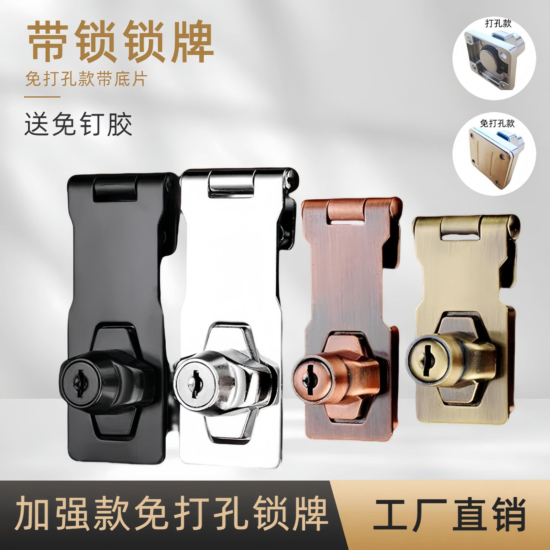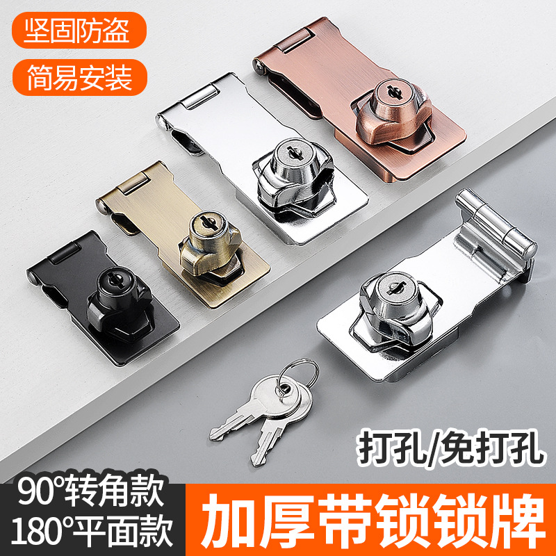 带锁卡扣搭扣锁牌抽屉锁柜门锁冰箱锁扣90度门锁扣防盗柜锁柜子锁