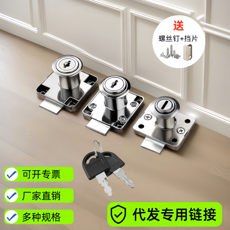 螺丝款抽屉锁带锁锁牌锁扣柜锁木门锁头老式搭扣锁文件柜锁防盗锁