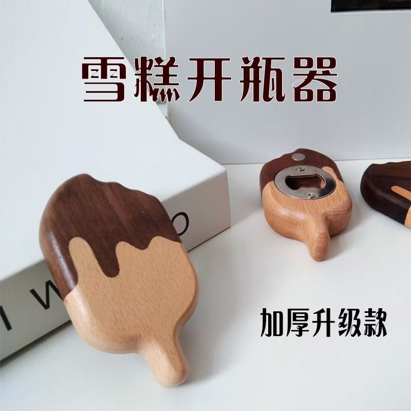 雪糕开瓶器冰箱贴高档木质开盖起子饮料啤酒创意雪糕木制启瓶器