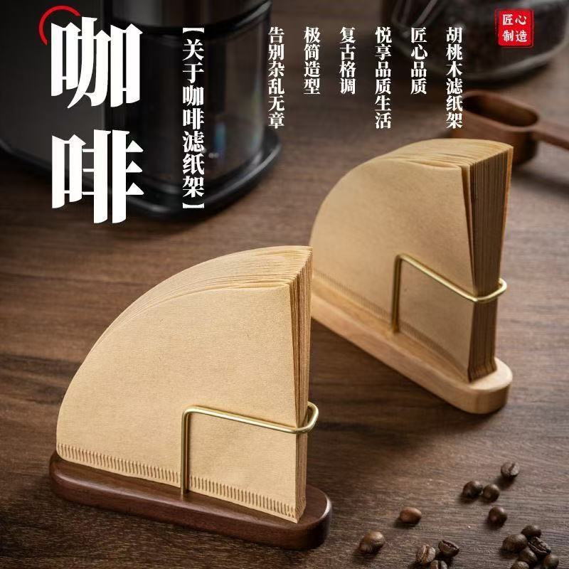 实木咖啡过滤纸架 立式收纳盒木制防尘支架家用滤纸盒 实木收纳架