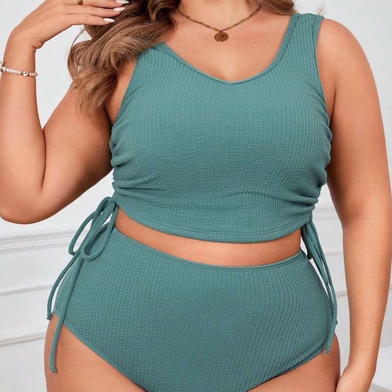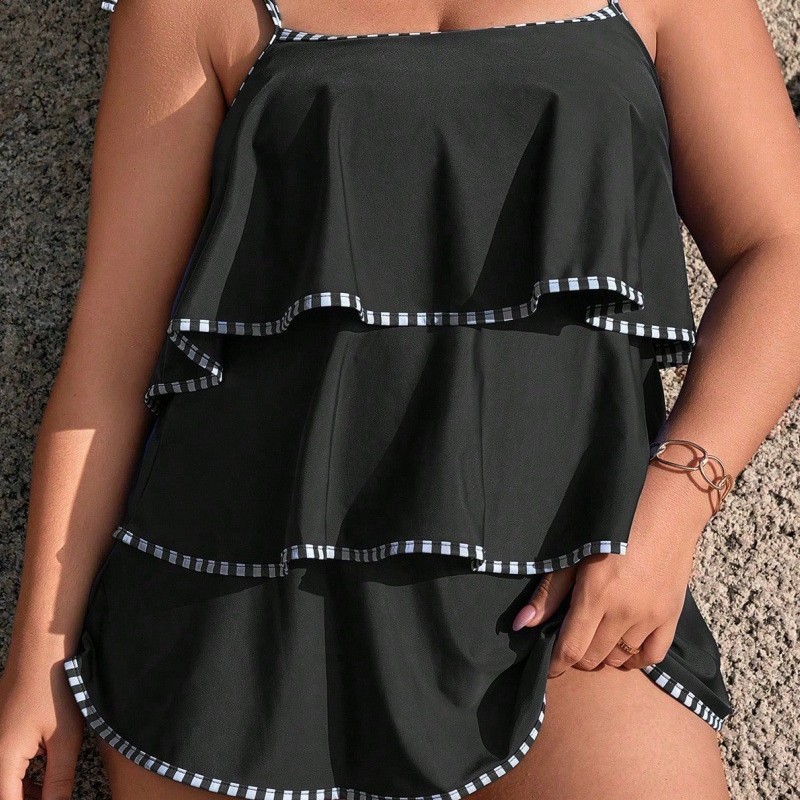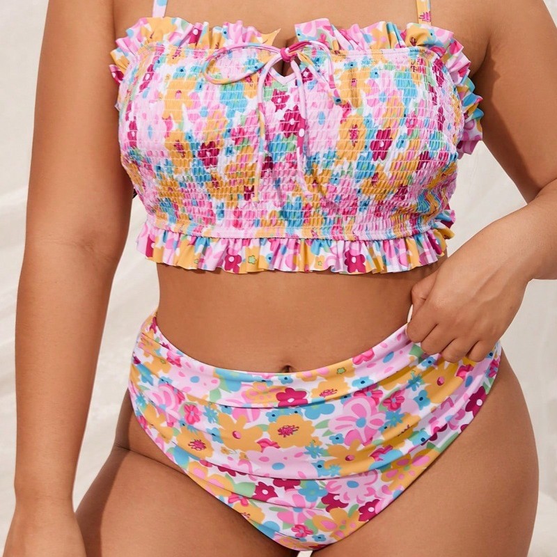 2025新款欧美外贸大码分体坦基尼荷叶边绑带露背泳衣跨境时尚泳装