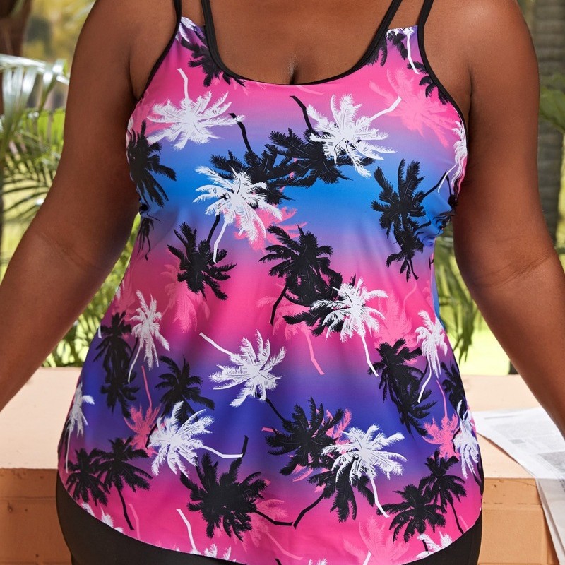 分体印花坦基尼 欧美外贸跨境时尚遮肚大码泳衣三角裤保守V领泳装