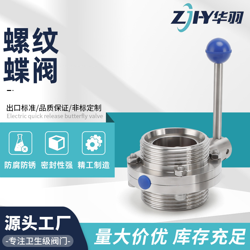 外螺纹活接蝶阀304不锈钢卫生食品级T型手动外丝蝶阀拉杆活接阀