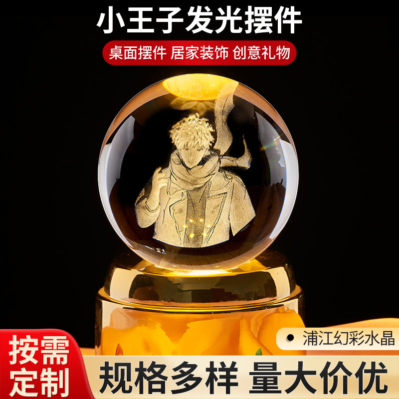 -               新款水晶小夜灯生日礼物发光3d内雕情人系创意桌面摆件水晶球摆件