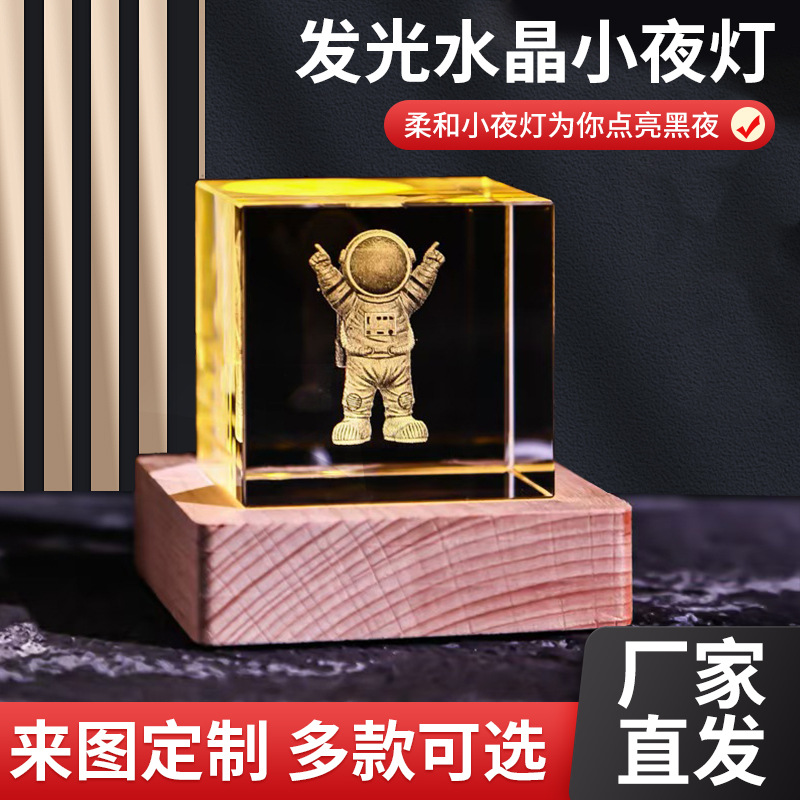 -               发光方体水晶小夜灯生日礼物3d内雕宇航员系列创意桌面摆件礼品