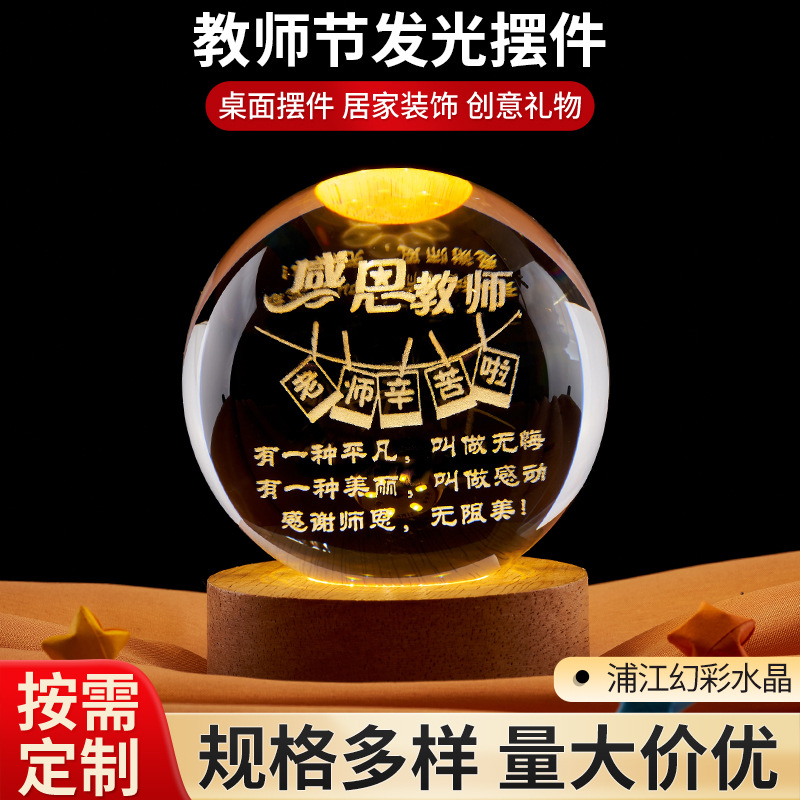 -               教师节激光内雕水晶球小夜灯 创意桌面摆件节日礼品水晶摆件批发