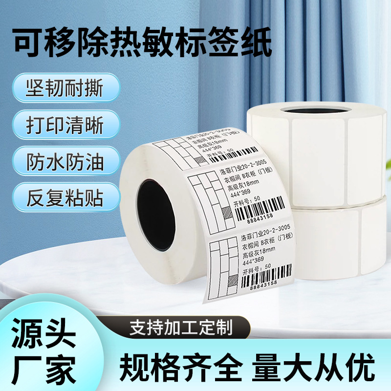 可移胶热敏标签纸不留胶撕不烂防水防油标签纸不干胶家具玻璃易撕