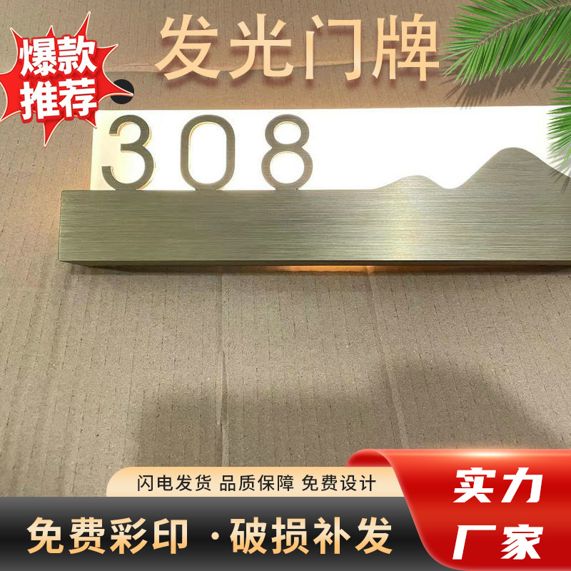 民宿酒店亚克力发光门牌批发 KTV带灯门牌号LED包厢洗手间标识牌