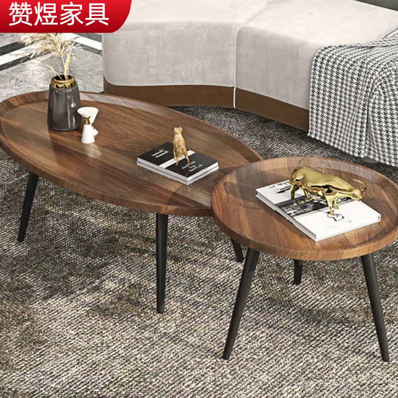 跨境批发北欧风格简易家用客厅小户型沙发边几小桌子木腿圆形茶桌