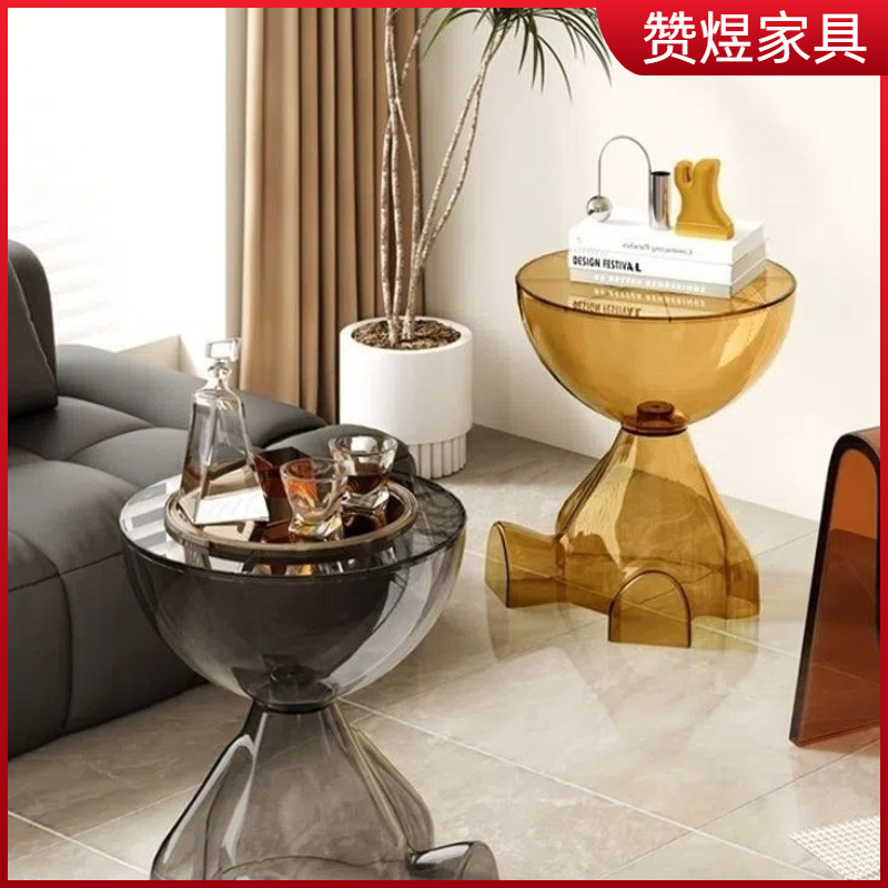 小型网红茶几透明桌落地摆件小熊沙发客厅床头柜移动亚克力置物架