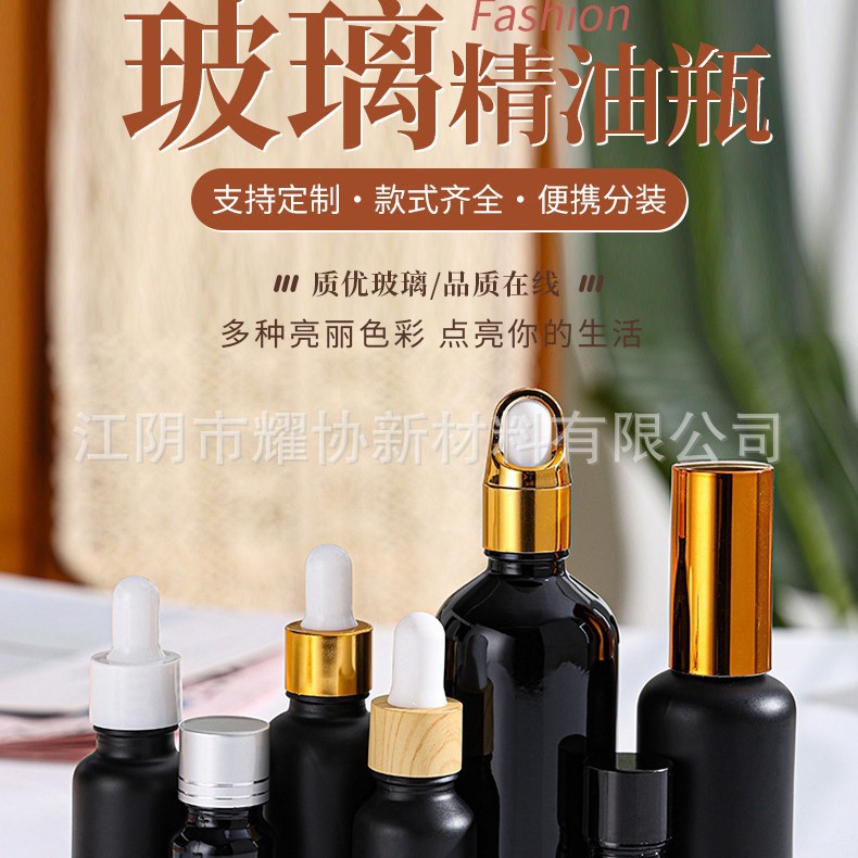 10ml 20ml 30m 50mll黑色化妆品精油瓶分装瓶滴管瓶