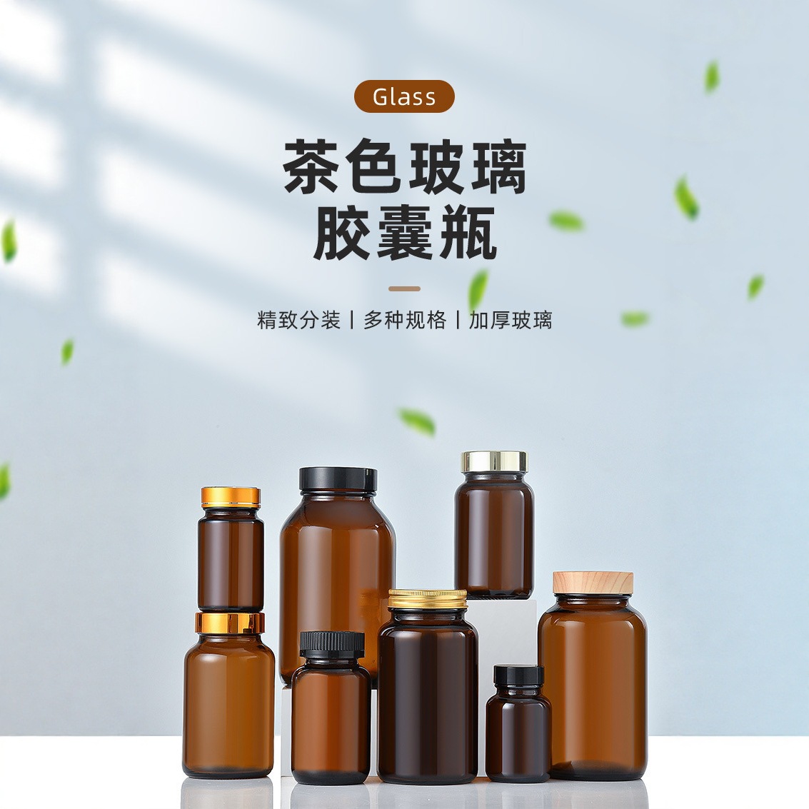 茶色玻璃胶囊瓶避光片剂分装瓶保健品玻璃瓶药片试剂瓶空瓶子