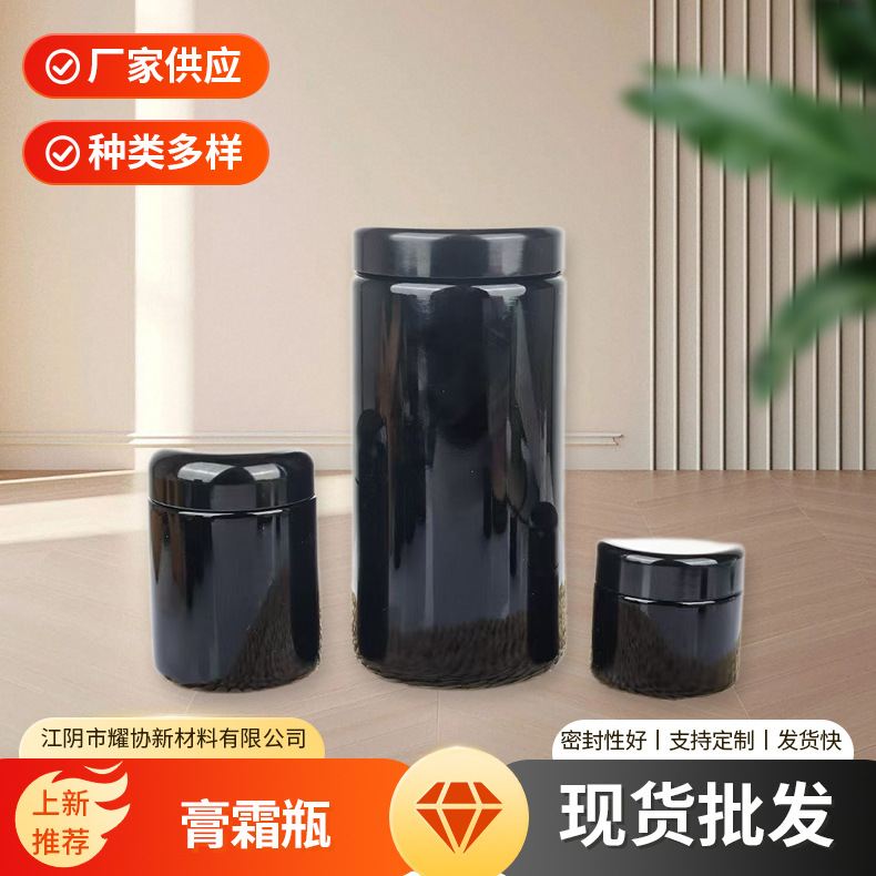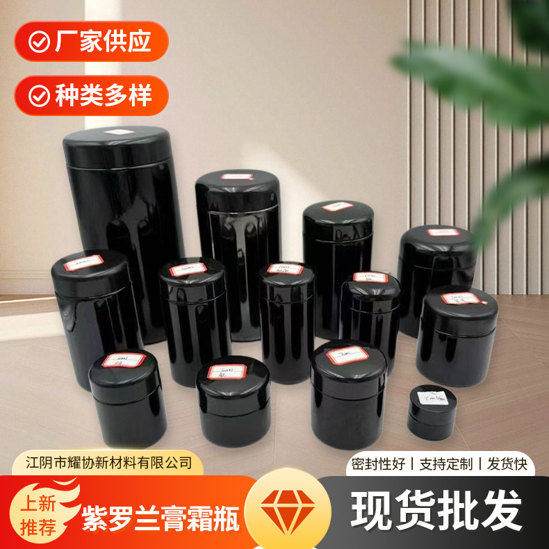 现货100ml150ml紫罗兰大麻瓶膏霜瓶30g50g黑瓷罐子玻璃瓶批发