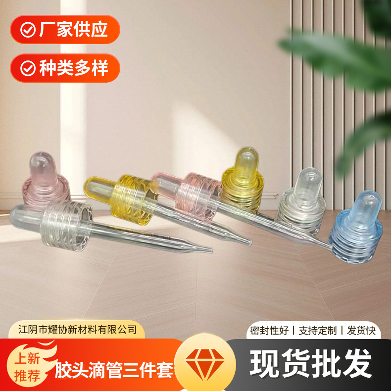 江苏厂家18牙胶头滴管三件套精油瓶圈胶头滴管头可来图定/制
