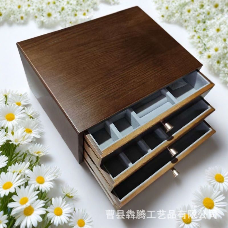 复古中式抽屉式收纳盒实木饰品盒手镯项链手串储物盒中国风珠宝盒