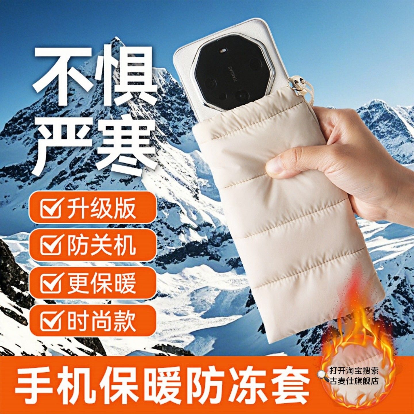 户外旅游用手机保暖套长白山户外手机防冻防关机丝棉保温耐寒收纳