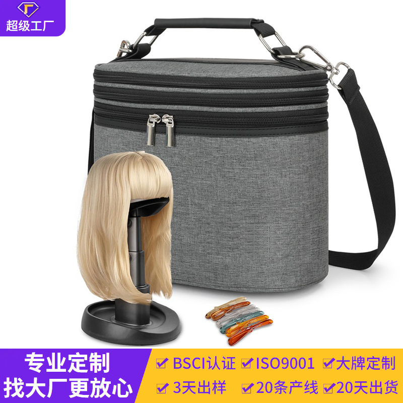 BSCI厂家定制假发收纳包大容量顶头套假发收纳袋多功能便携防尘包