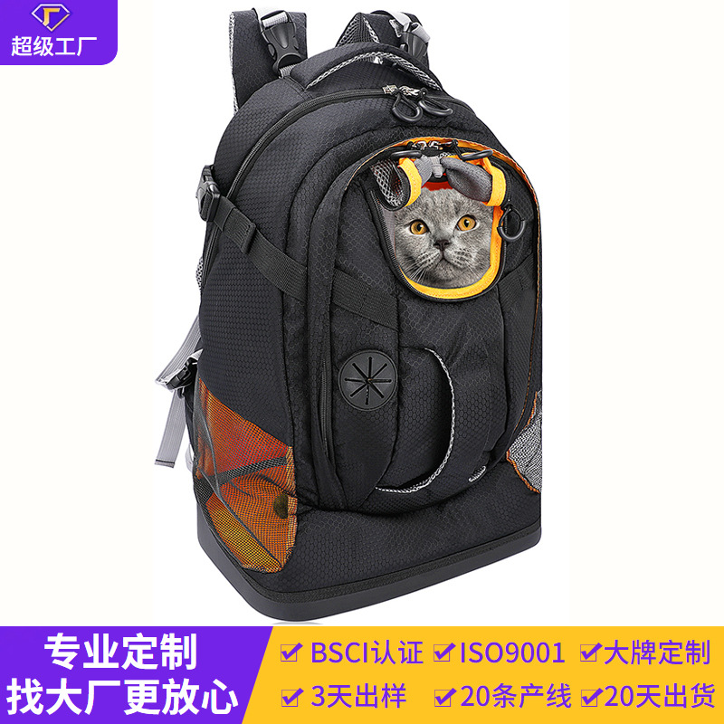 BSCI厂家热销网料双肩宠物背包可折叠便携透气猫咪包时尚宠物包