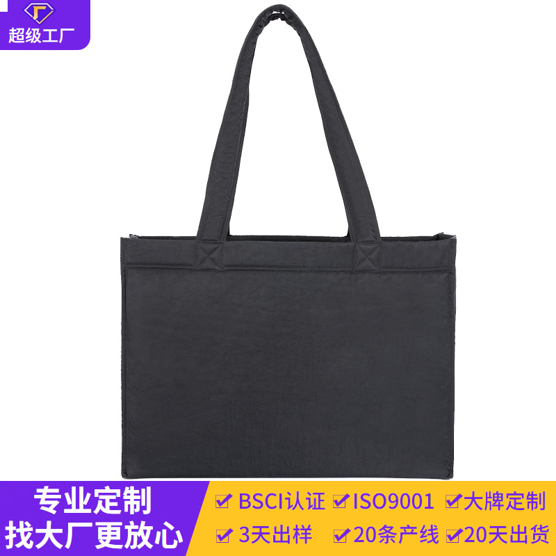 新款防泼水单肩包 大容量购物手提袋 女士时尚纯色出行旅游手提包