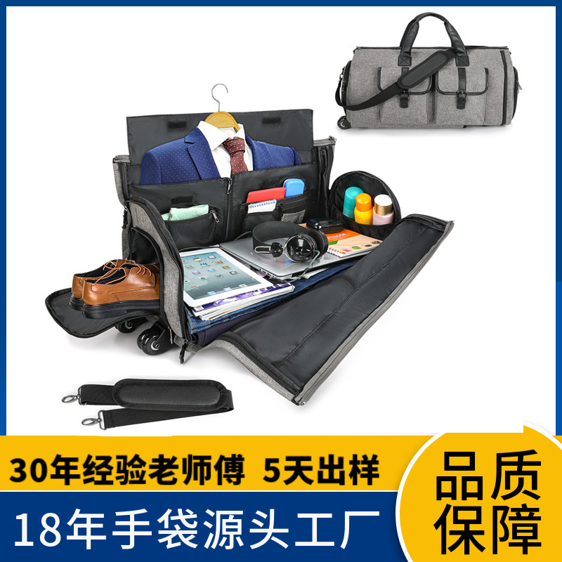 跨境新款旅行拉杆西装包西服收纳袋正装手提大容量行李袋带轮子