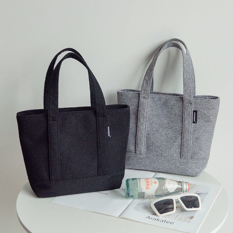 日系风手提包仿麻纹简约布包大容量女包通勤妈咪包外出休闲手拎包