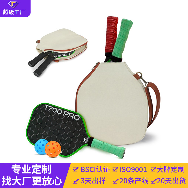 BSCI厂定制匹克球拍套帆布多色氯丁橡胶防水乒乓球拍拉链保护袋包
