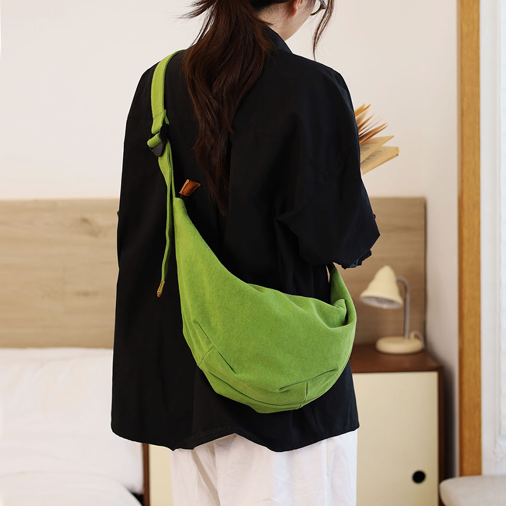 工厂批发热销饺子包女斜挎包轻便大容量百搭文艺日系慵懒风帆布包