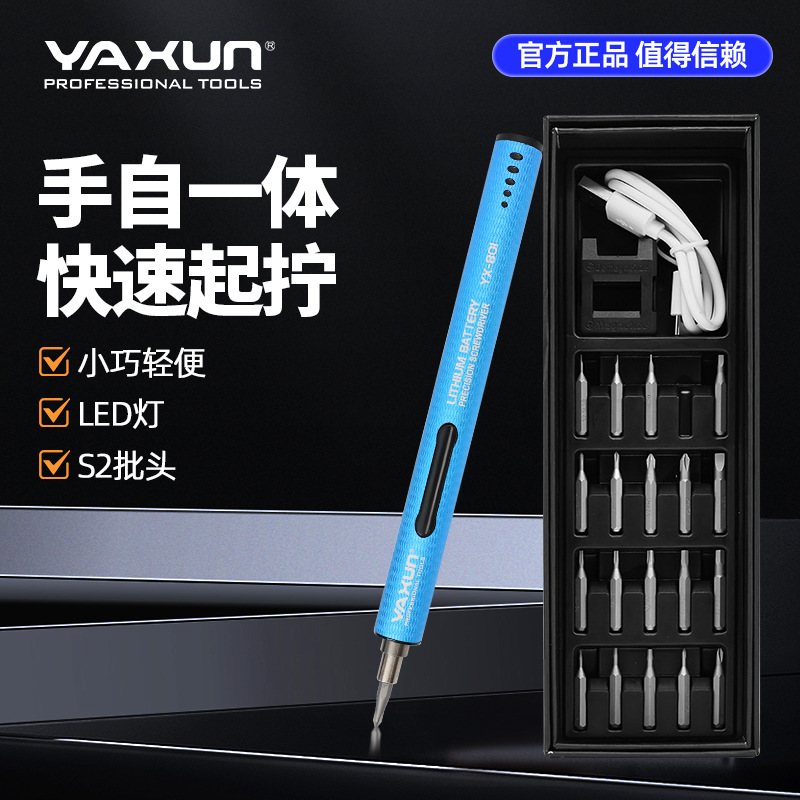 YAXUN精密电动螺丝刀手机眼镜手表起子可充电锂电池电批拆卸迷你