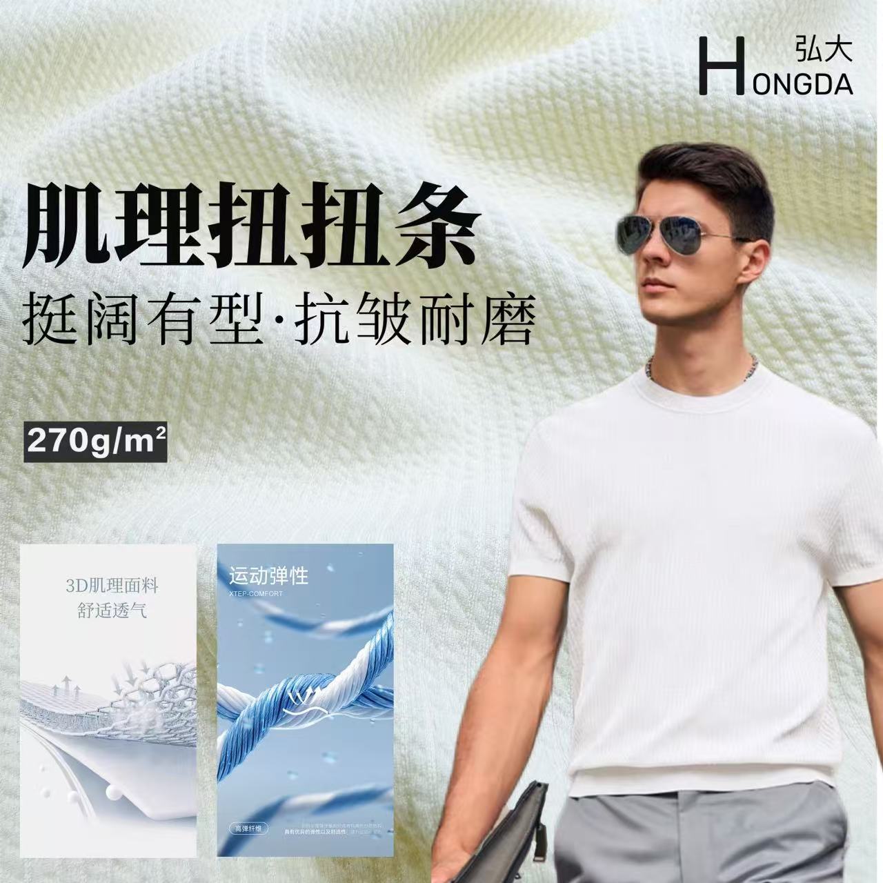 轻量肌理扭扭条面料 270g户外运动休闲布料 时尚卫衣t恤卫裤面料