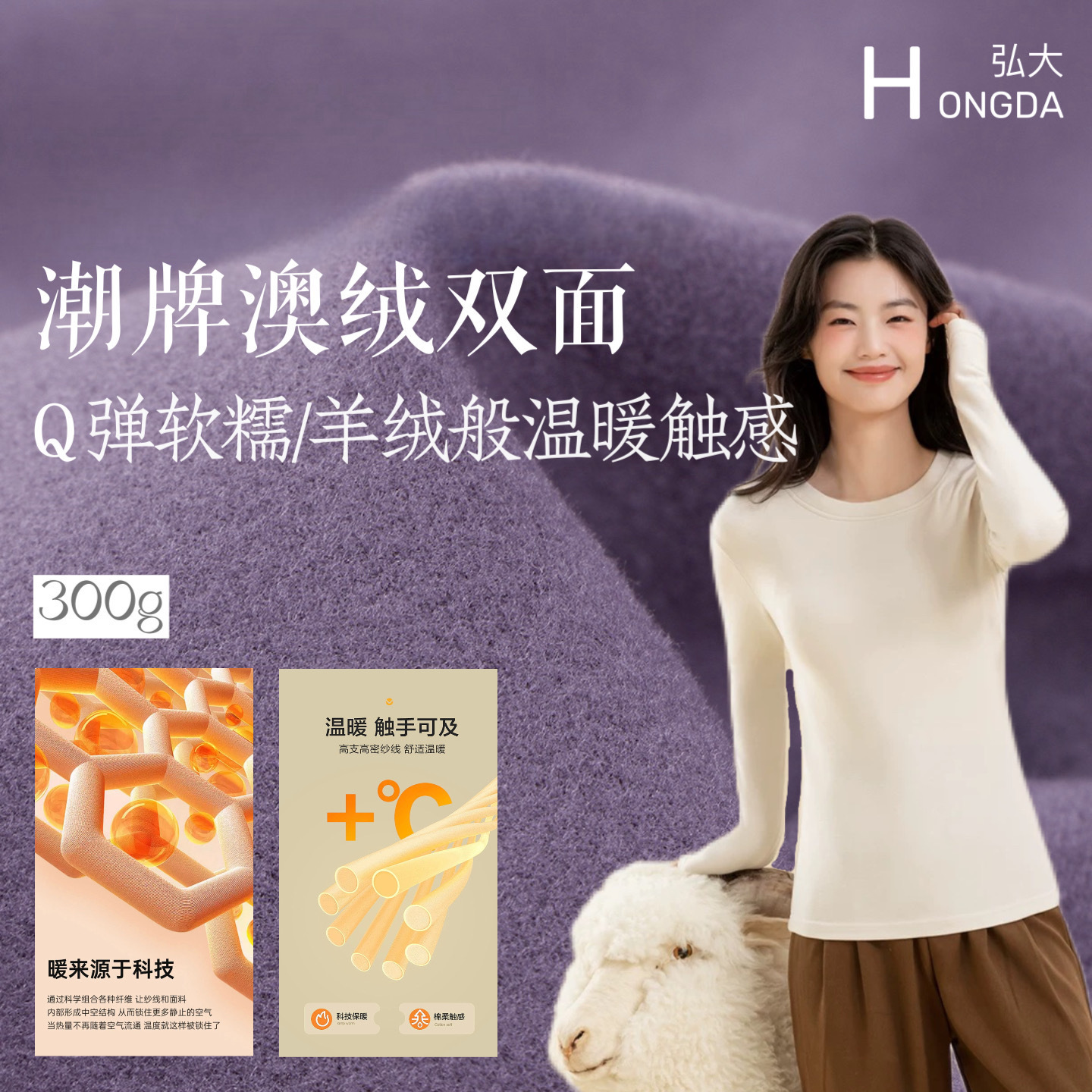 300g澳绒双面德绒潮牌面料 秋冬发热保暖打底衫家居服布料