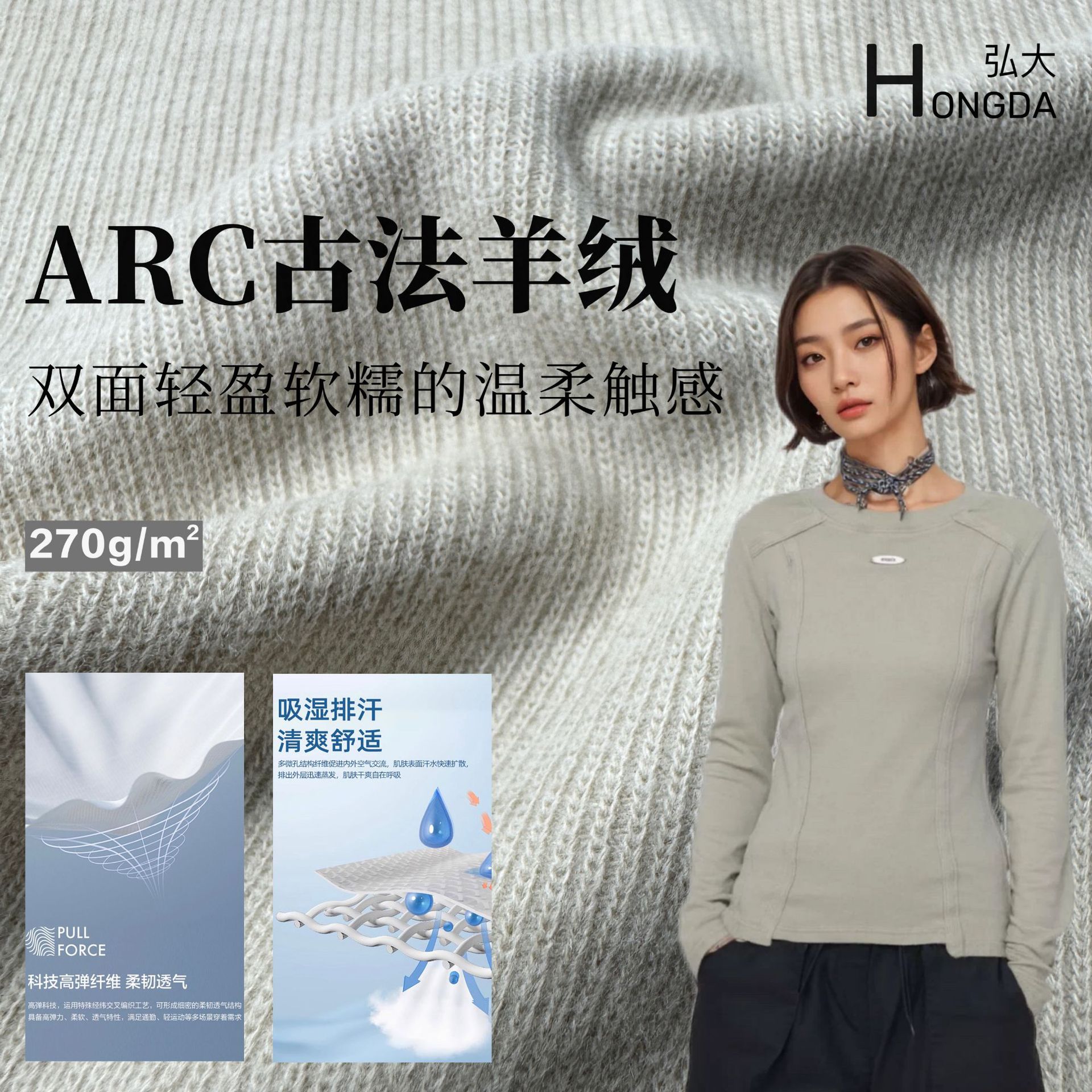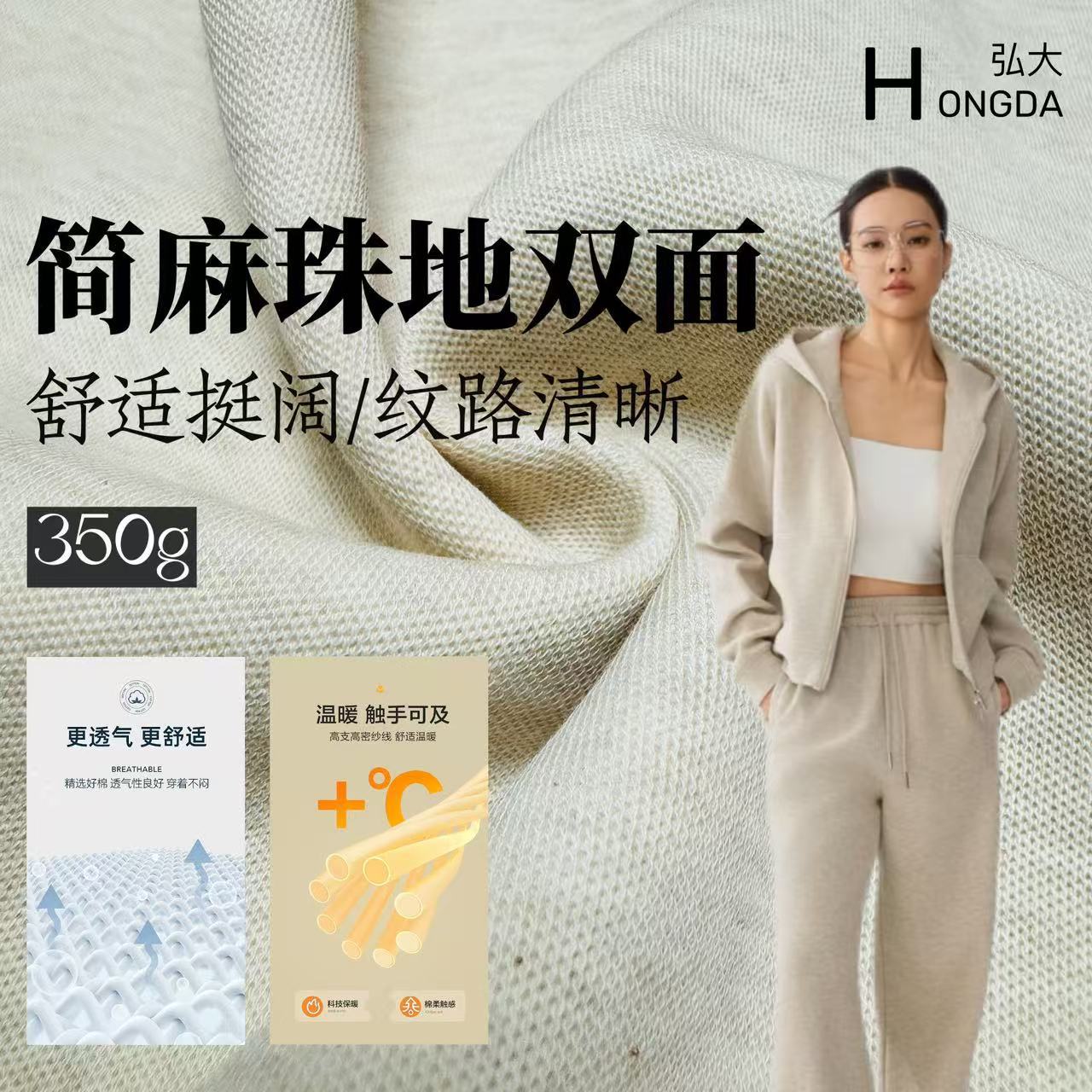 350g潮牌双面珠地面料 肌理感双面布料 潮牌卫衣卫裤套装针织面料