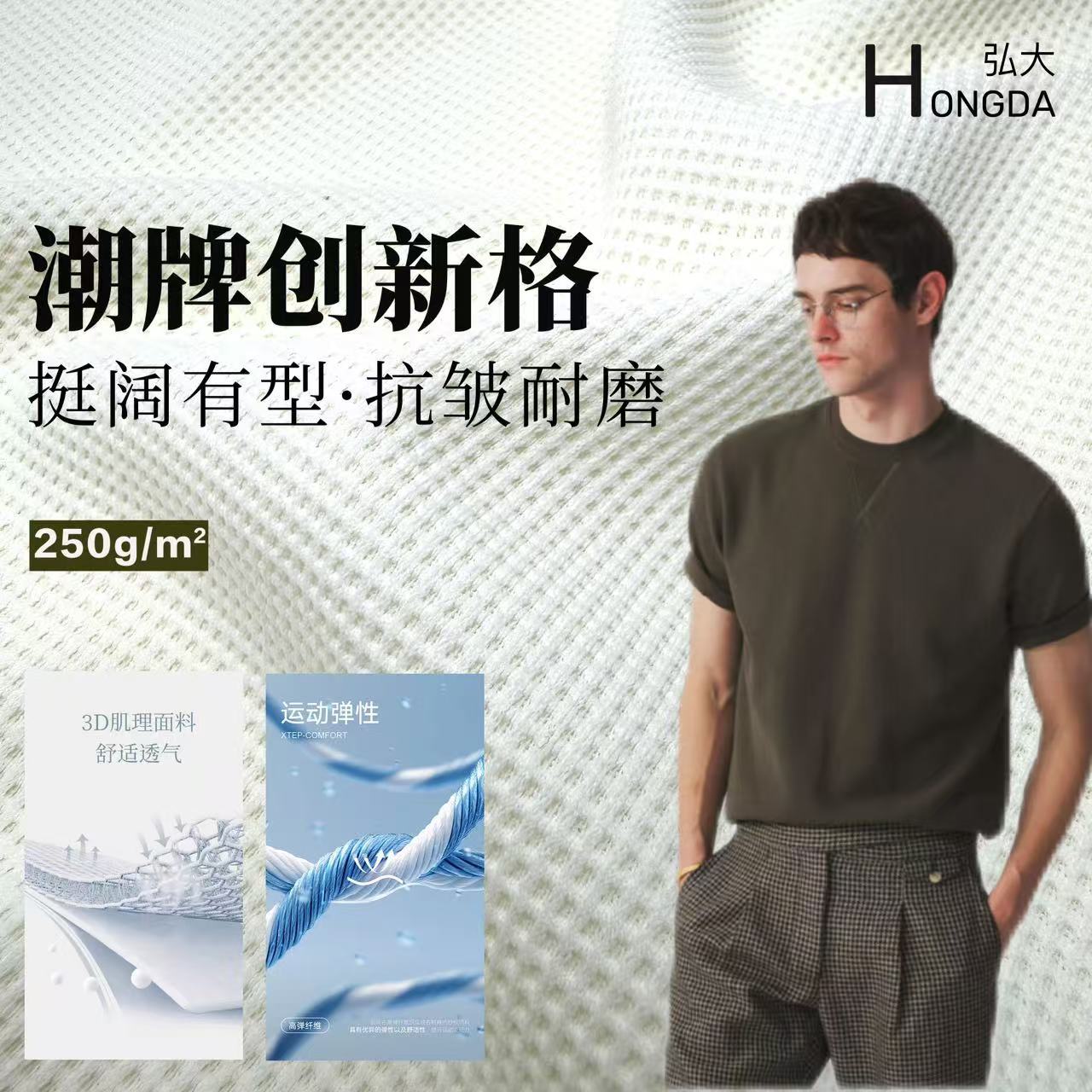 现货 创新肌理格面料 250g弹力华夫格布料 时尚卫衣t恤卫裤面料