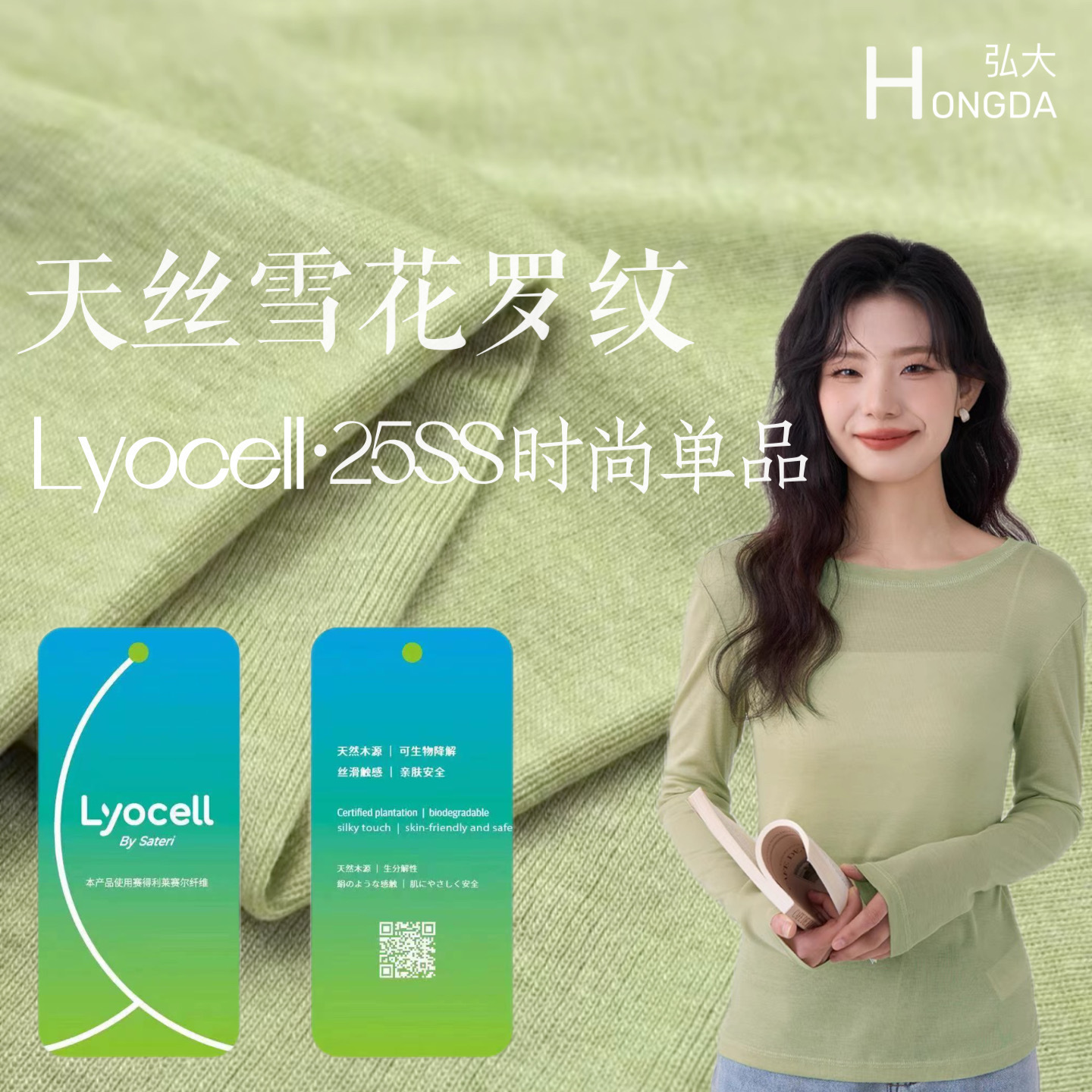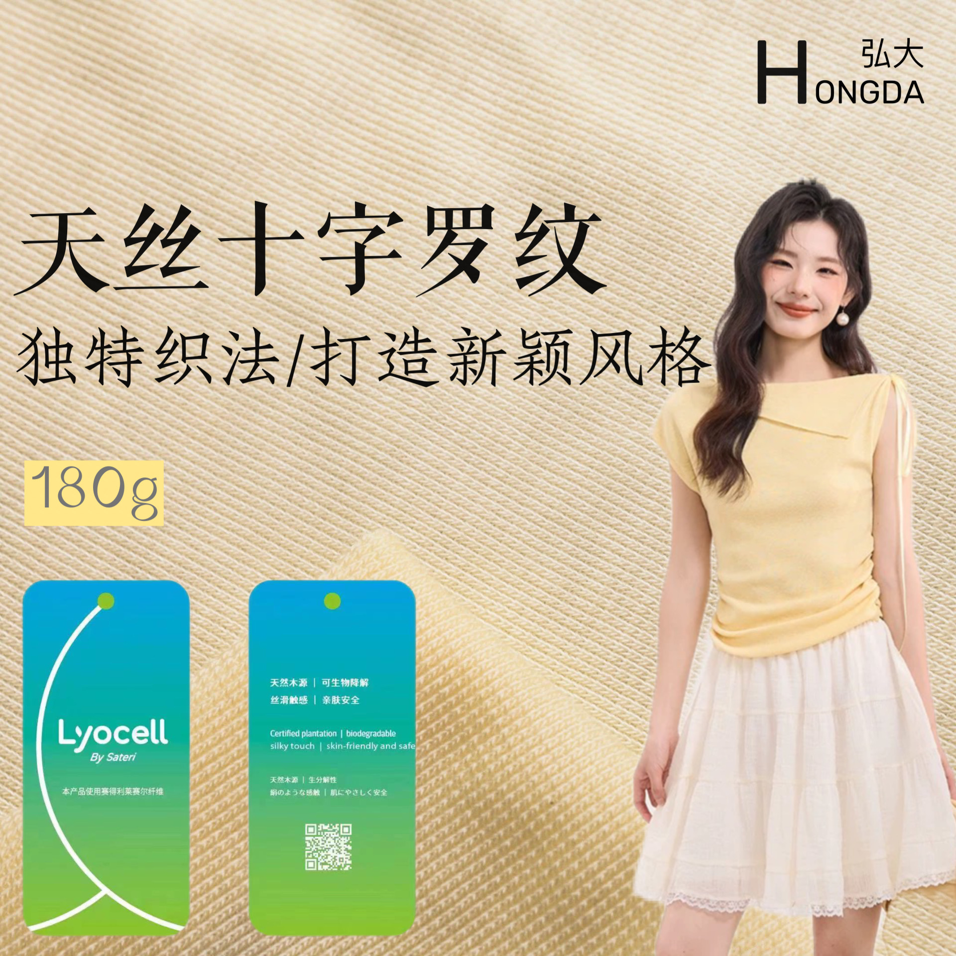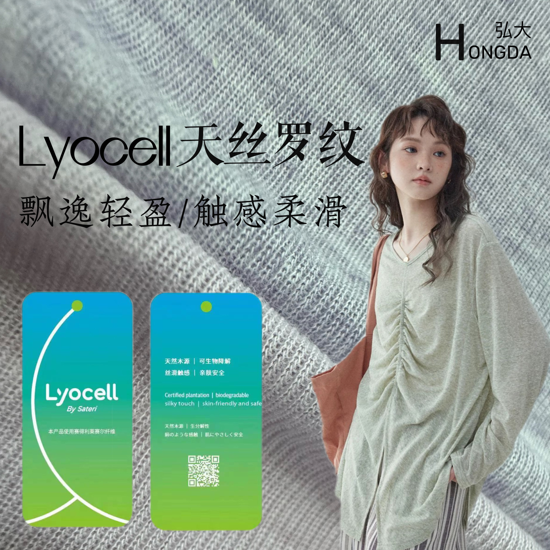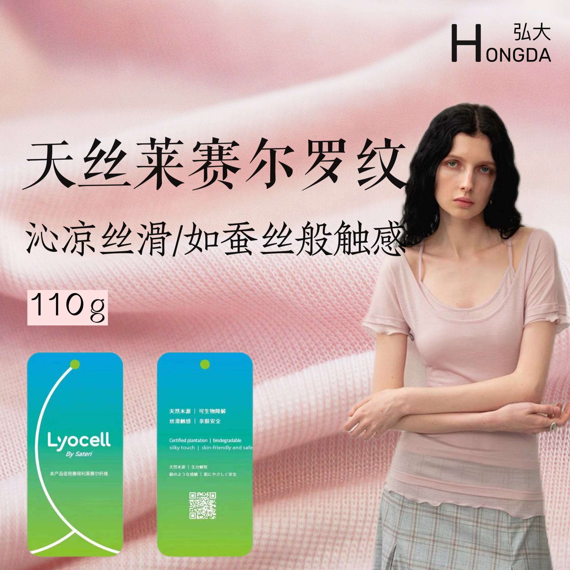 天丝莱赛尔面料170g 针织弹力凉感莱赛尔透气打底天丝十字罗纹