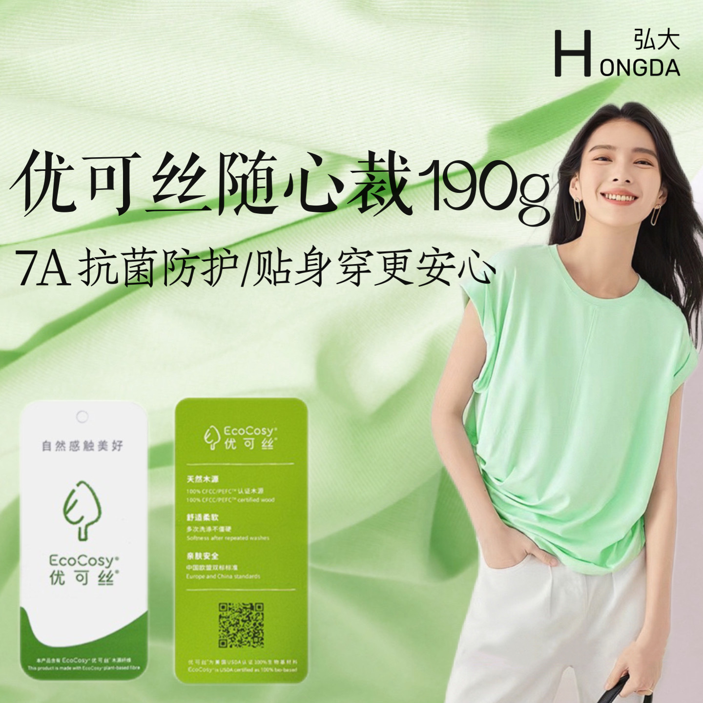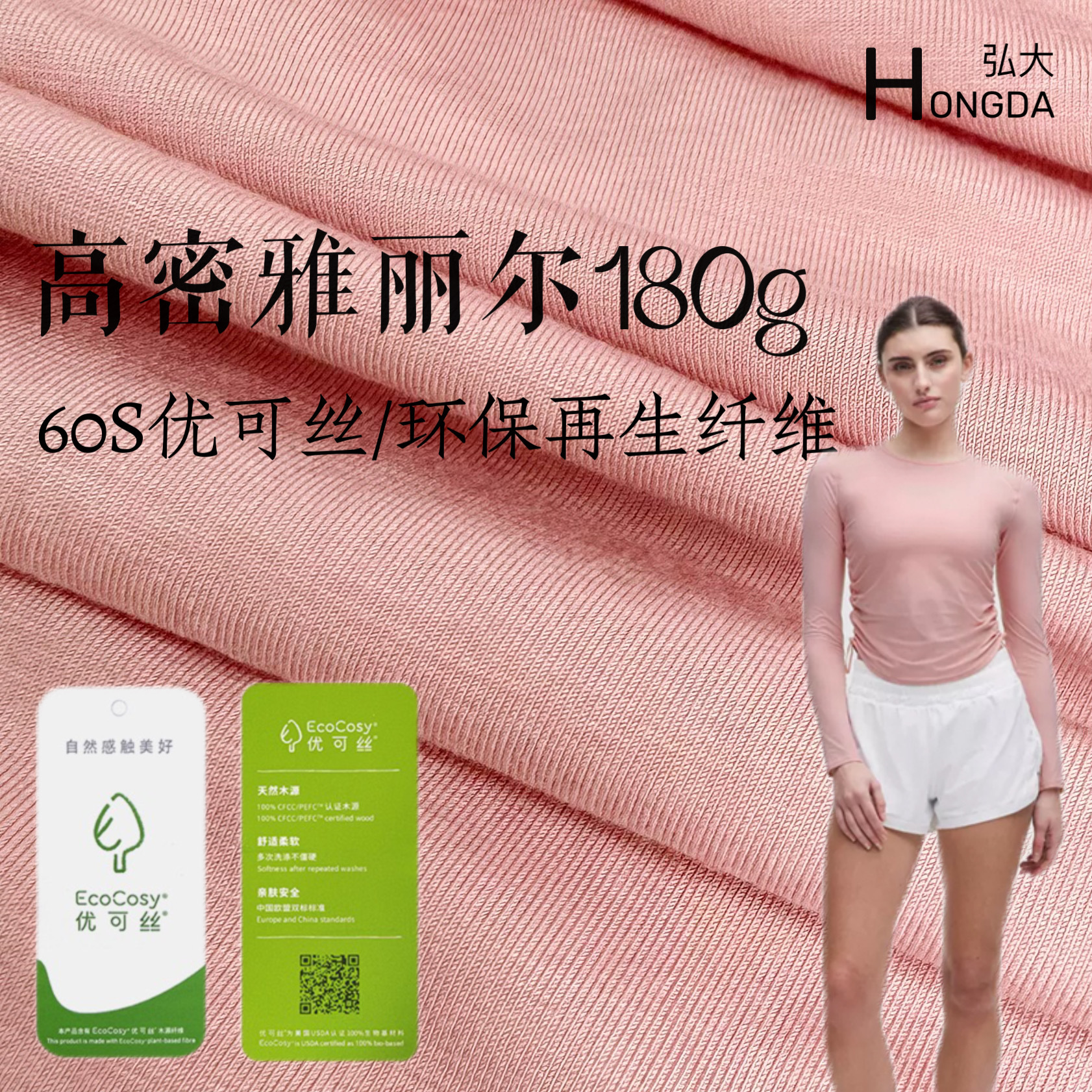 50S优可丝1*1罗纹布料女吊带童装T恤内衣裤莫代尔再生面料抗菌