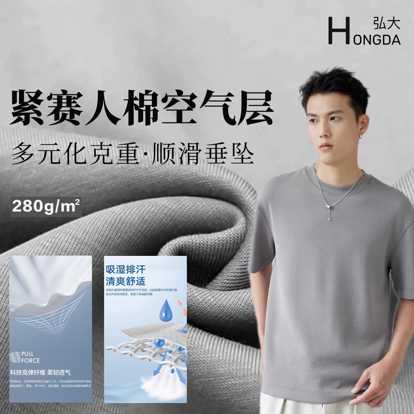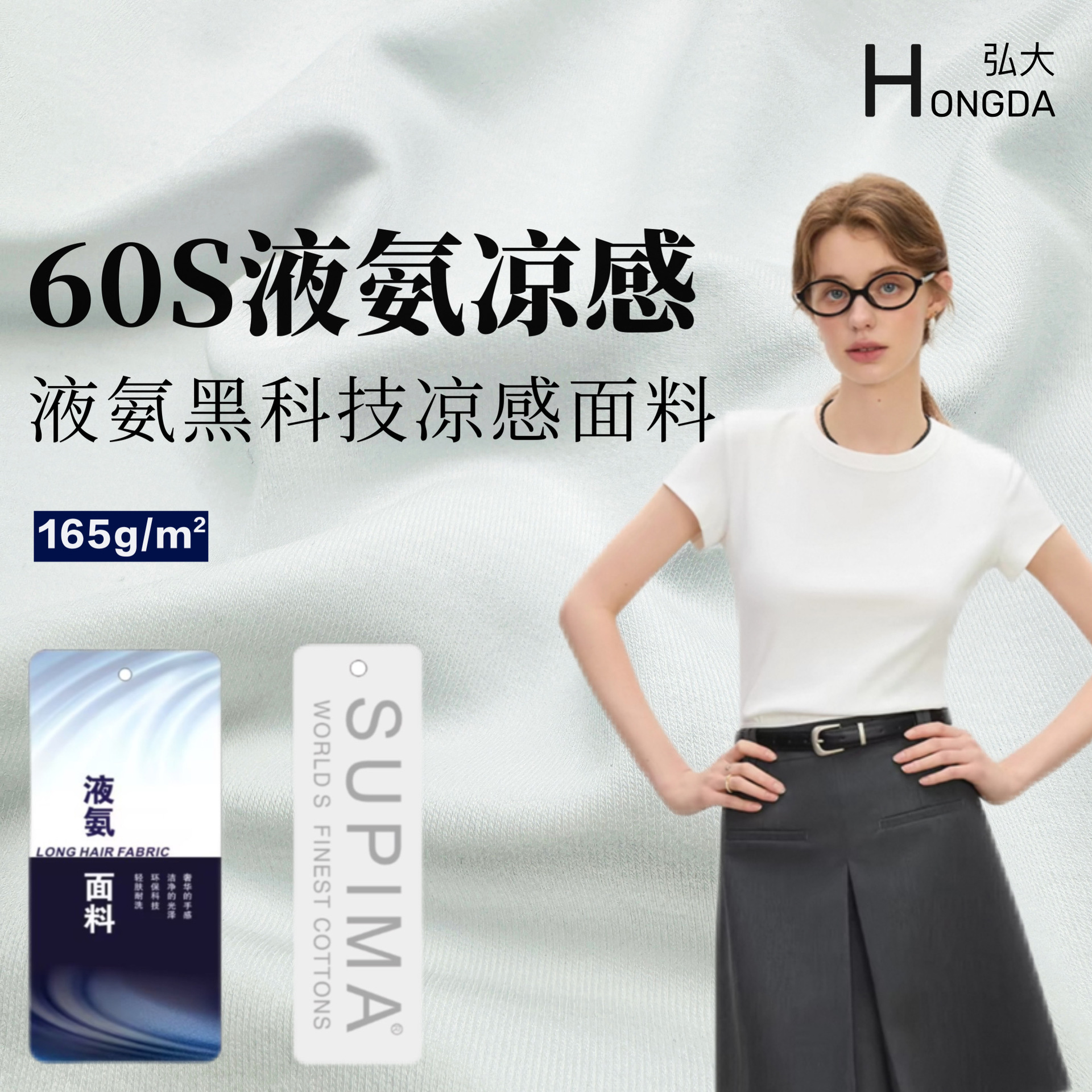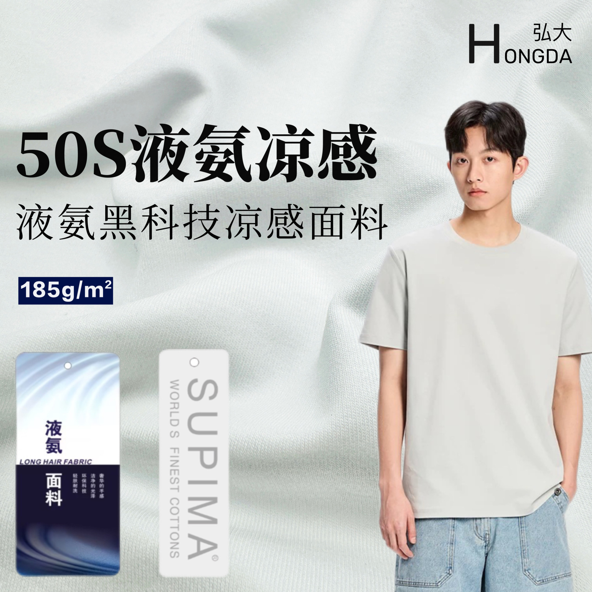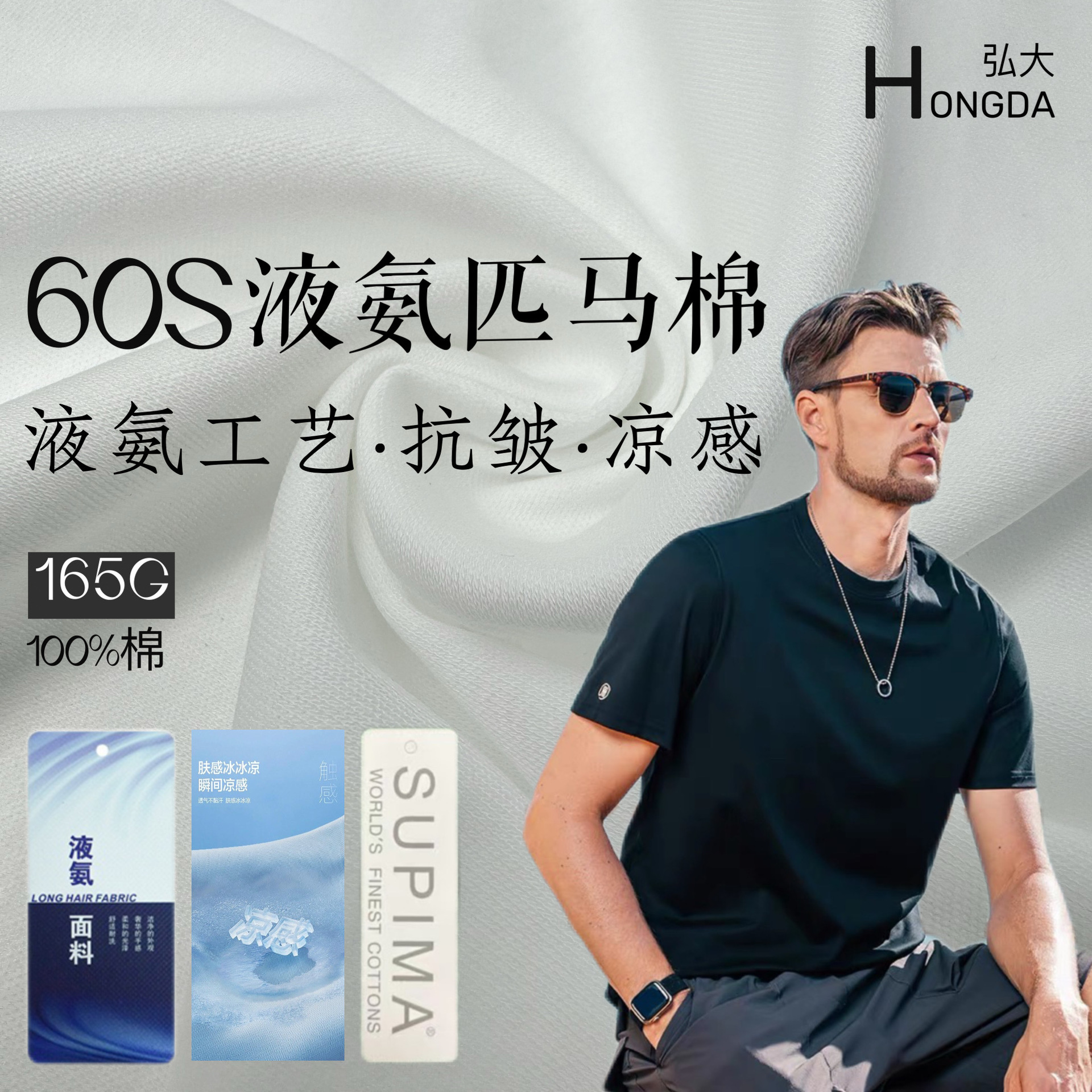 60S液氨匹马棉 165g双面布休闲纯棉T恤抗皱液氨面料春夏 凉感面料
